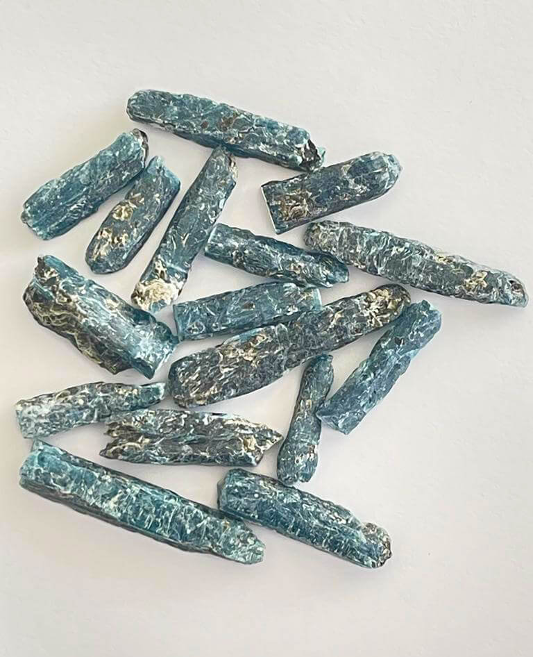 Australian Kyanite (Mohs’ Hardness: 4 – 7.5) is an excellent jewelry gemstone. Always store Australian Kyanite carefully to avoid scuffs and scratches. Clean with gentle soap and lukewarm water, scrubbing behind the gem with a very soft toothbrush as necessary. After cleaning, pat dry with a soft towel or chamois cloth.
